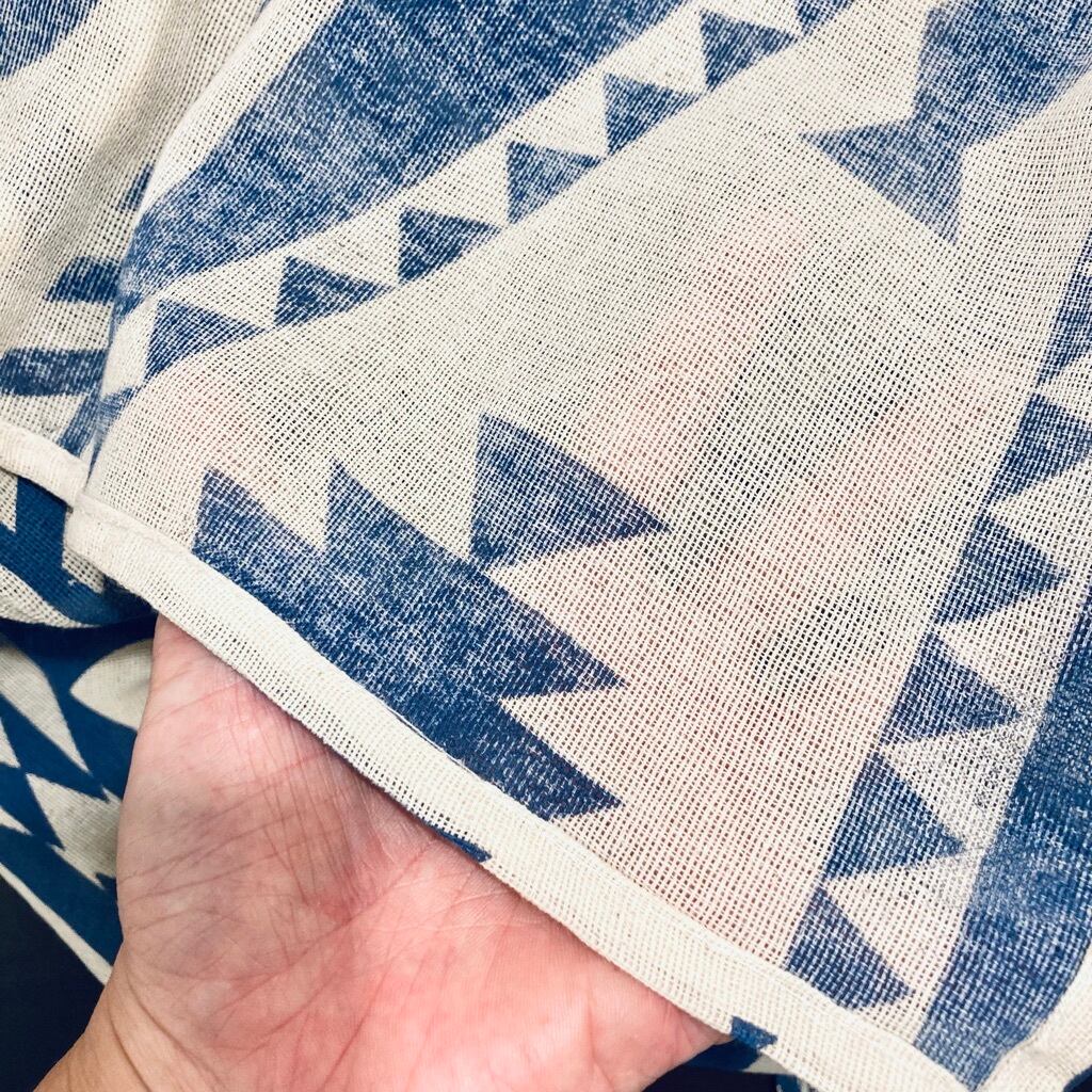 わりと薄めの生地なのでそのまま上に座るとか寝っ転がるには向いていないかも知れませんが、とても雰囲気のあるデザインコットンなので、アイデア次第で使い勝手のいいアイテムになるかもです。