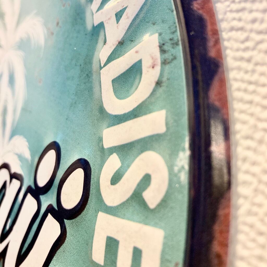 丸型 ブリキエンボスプレート "ANOTHER DAY IN PARADISE"